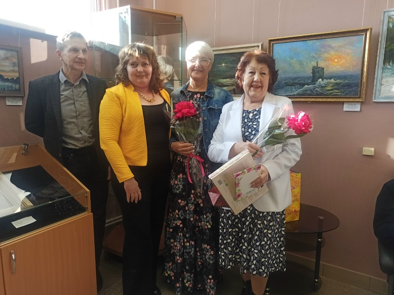 В центре внимания оказались талантливые художницы Валентина Смирнова и Людмила Венедиктова, чьи работы объединила не только дружба, но и общая школа мастерства под руководством известного алтайского художника Владимира Кикотя. Выставка приурочена к юбилею Валентины Анатольевны Смирновой. В 2016 году в библиотеке проходила выставка «Краски жизни», и в этом году отмечается 10-летие дружбы с выставочным залом. Экспозиция выставки включает портреты, пейзажи и натюрморты, выполненные в техниках масляной живописи и акварели. Работы художниц полны света и жизнелюбия. Праздничное настроение на встрече дарили всем гостям ансамбль «Домра Стайл» и ансамбль «Созвучие», преподаватели и ученики Детской музыкальной школы №5 и Шульц Ольга Петровна – преподаватель Калманской детской музыкальной школы. Открытие выставки завершилось теплыми словами поздравлений от родственников, друзей и коллег. Приглашаем всех любителей прекрасного посетить выставку «Радуга дружбы» до 28 февраля.
