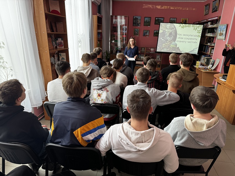16 апреля в библиотеке №20 прошёл необычный час экокультуры «Как сохранить планету чистой» для студентов Алтайского государственного колледжа.
