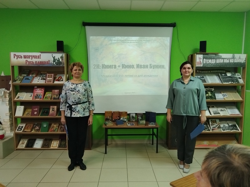 13 ноября библиотека №32 пригласила жителей Индустриального района на медиачас «2К: Книга + Кино. Иван Бунин», посвященный 155-летию со дня рождения великого писателя.