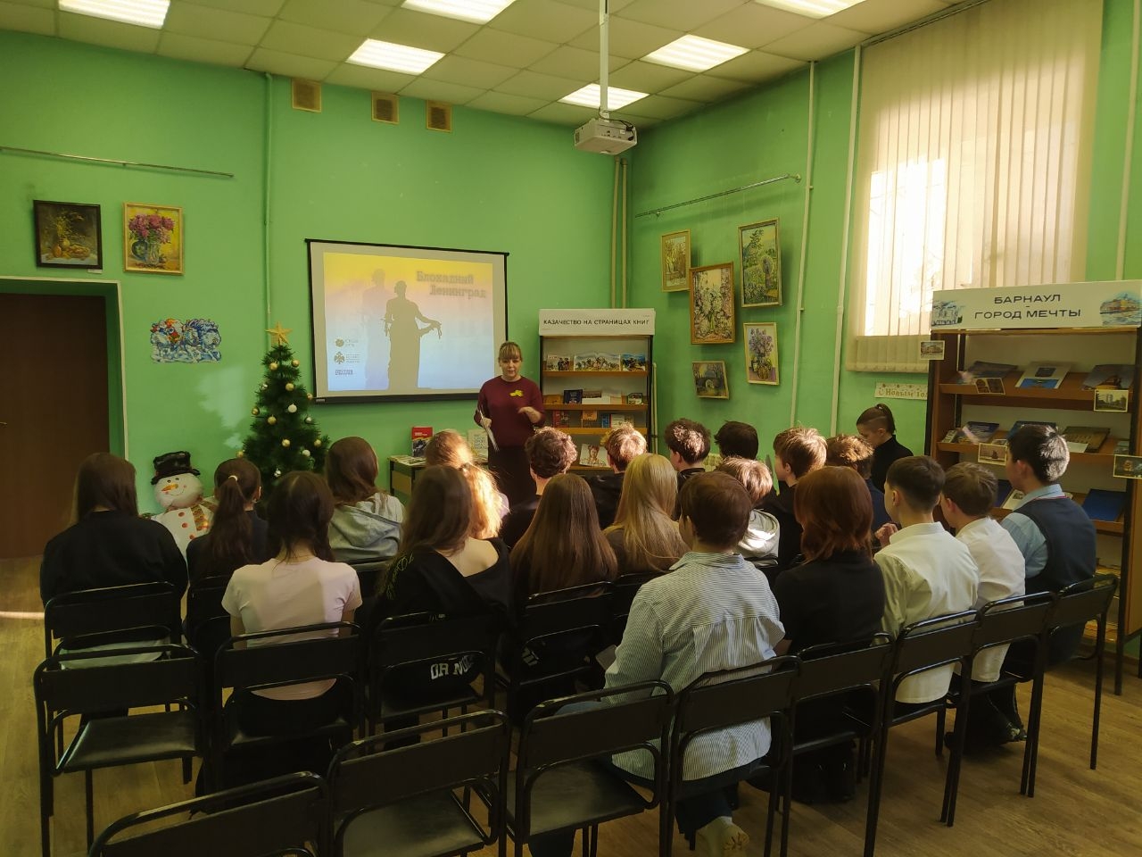 14 января в библиотеке №1 прошла акция «900 дней одного города», посвященная памяти блокадного Ленинграда. Специально приглашенный гость — Понкрашева Марина Владимировна, председатель комитета по социальным вопросам и молодежной политике БГД, рассказала участникам, как началась блокада Ленинграда, с чего всё началось и как жители города боролись за выживание в самые тяжелые времена.