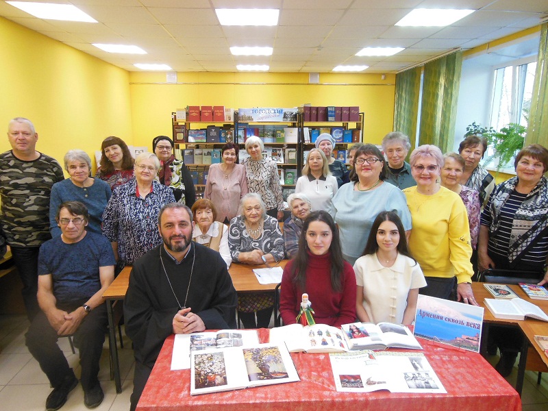 С историей, с уникальной культурой этой загадочной и великолепной страны, искусством Древней Армении, её традициями и обычаями, читателей библиотеки познакомил настоятель церкви «Святой Рипсиме» города Барнаула, Алтайского края, Святой Армянской Апостольской Православной церкви отец Акопян Маштоц. В своём выступлении отец Маштоц с любовью сказал: «Страна Армения – живая летопись, где страницы истории раскрываются под лучами солнца, создавая пленительную симфонию, звучащую в каждом камне, в каждой горной вершине».