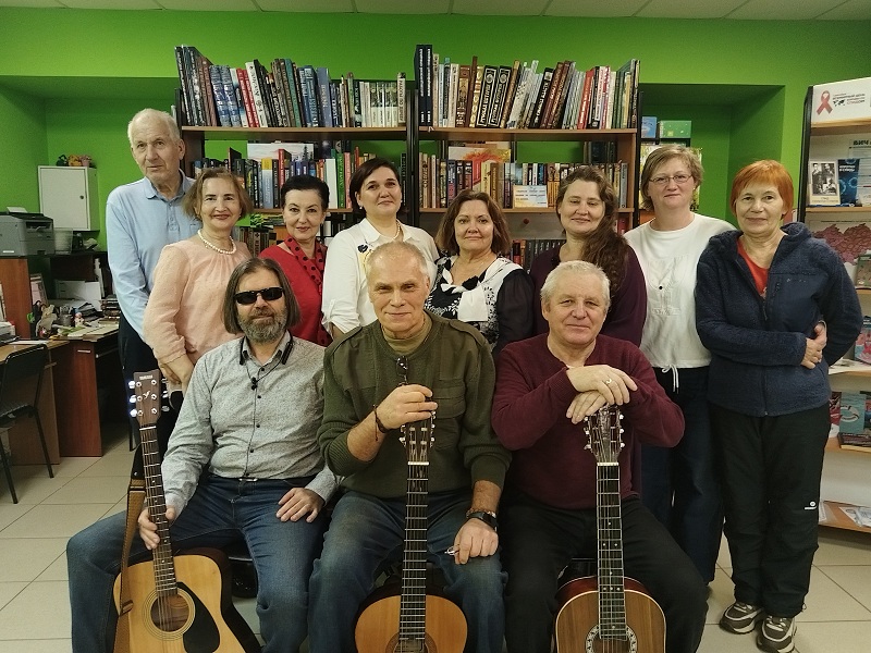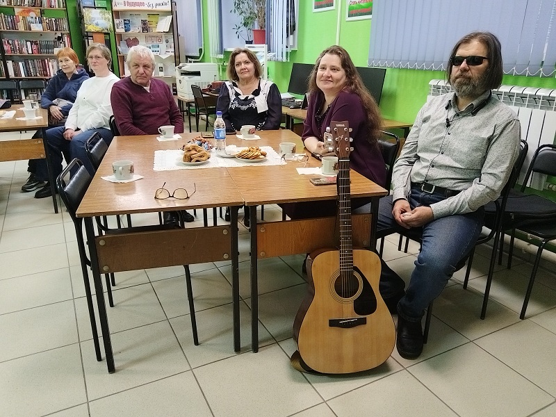 В этот раз вспоминали песни, в которых упоминаются профессии, а их оказалось очень много, начиная с самых редких до сказочных и даже космических! Ведущая рассказала историю нескольких песен, написанных метрами бардовской песни, среди которых Юрий Визбор, Александр Галич, Юлий Ким, Александр Городницкий, Булат Окуджава. Интересной для участников оказалась викторина, подготовленная по творчеству Владимира Высоцкого, у которого много песен, в том числе о спортивных профессиях. Вторая часть встречи была наполнена живым звучанием гитар и голосов собравшихся бардов - Александра Сибирского, Александра Савченко, Евгения Краснобрыжего. Встреча прошла в очень теплой атмосфере, наполненной улыбками, шутками, и конечно, музыкой!