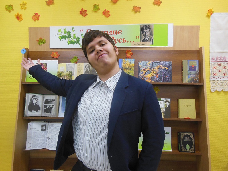 В этот день в библиотеке собрались молодые люди от 12 до 25 лет. Началось мероприятие с музыкальных произведений на стихи Сергея Есенина, которые исполнил Дмитрий Аккорд.
