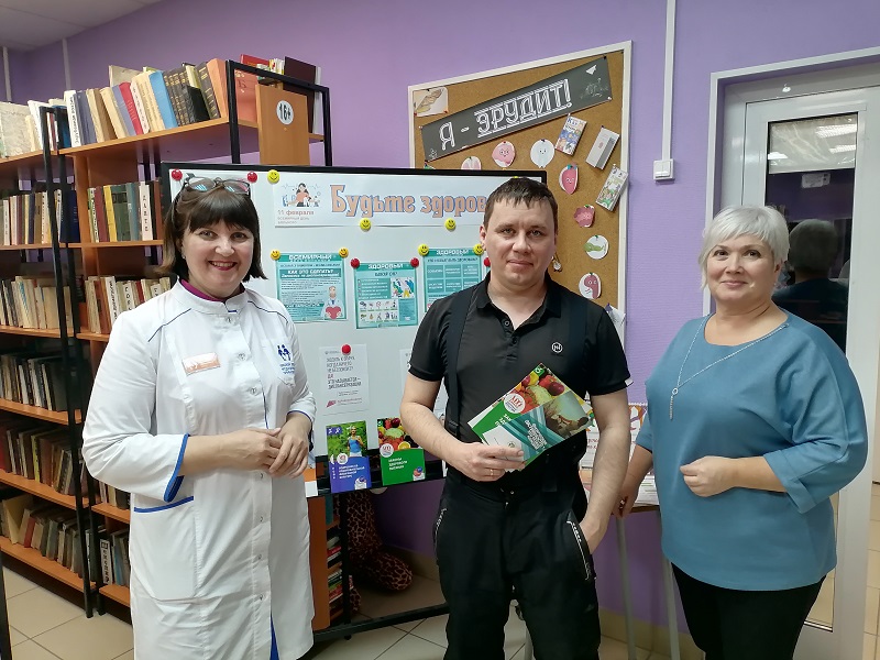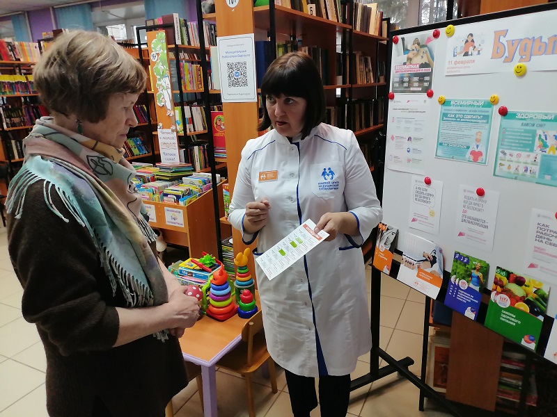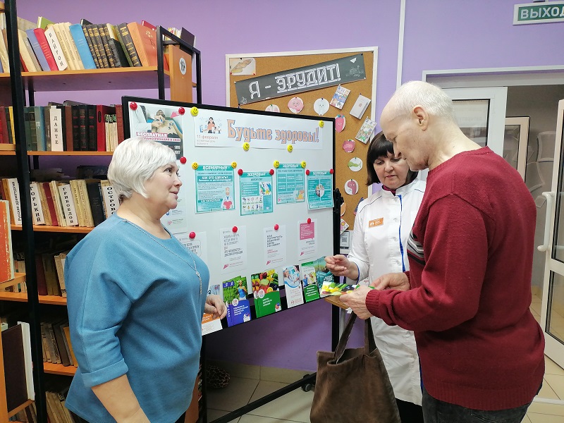 Организатор акции – главный библиотекарь Ирина Пергаева - подготовила для посетителей стенд с полезной и актуальной информацией, предоставленной КГБУЗ «Городская поликлиника №9, г. Барнаул», а также отвечала на возникающие вопросы. Специалист Краевого Центра общественного здоровья и медицинской профилактики Светлана Жарикова рассказывала о том, что подразумевается под диспансеризацией: какие документы необходимо иметь при профилактическом осмотре, какие анализы необходимо сдать, какие врачи-специалисты ведут прием. Все желающие получили информационные буклеты, предоставленные Краевым Центром общественного здоровья и медицинской профилактики.