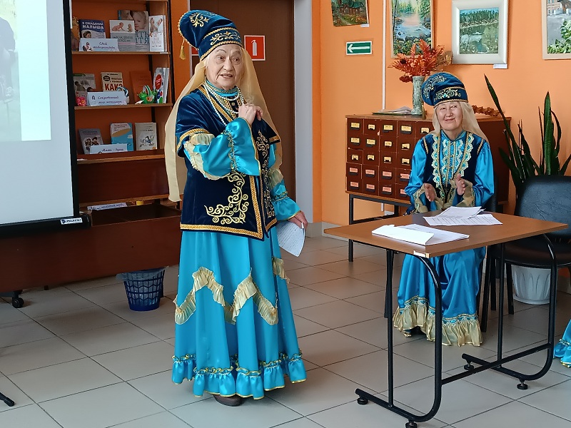 Русские и татары живут бок о бок много веков, они уважают и ценят традиции друг друга. На экскурсию в мир татарской культуры были приглашены представители местной национально-культурной автономии татар. Ее председатель, Саида Султановна Аминова, рассказала присутствующим об истории татарского народа от Казанского царства, первых переселенцев на Алтае и до наших дней. Вагиза Мисвахова ярко и эмоционально познакомила гостей мероприятия с традициями, костюмом, праздниками и национальными блюдами татар. Референт автономии Флора Захитова представила слушателям книгу «Мы татары», предназначенную тем, кто помнит о своих корнях и кому интересна история нашей многонациональной Родины. Ансамбль «Сандугач», в переводе «Соловей» очень задорно исполнил татарские народные песни. Всем гостям этнографической экскурсии было предложено покушать самое любимое лакомство татарского народа – это знаменитый на весь мир чак-чак. Встреча прошла очень тепло и душевно.