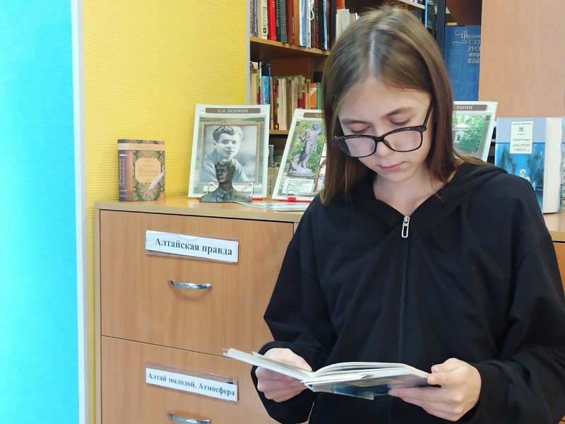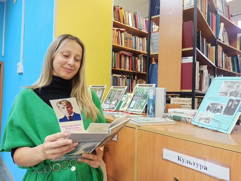 В стихах Сергей Есенин предстает тонким лириком, мастером пейзажа и человеком, глубоко понимающим и любящим свою страну - Русь. Любовь читателей к этому поэту, его популярность невозможно сравнить с популярностью любого другого автора. Критики называют его «соловьём России», «душой русского народа», «родником поэзии народной». К юбилею поэта, 3 октября, в течение дня, сотрудники Центральной детской библиотеки им. К.И. Чуковского проводили поэтическую акцию. Все желающие читали любимые стихи поэта. В подарок читатели библиотеки получали распечатанные закладки с отрывками стихотворений, чтобы насладиться чтением поэтических строк в любое время. Стихотворения на закладках были представлены в форме ребуса-загадки (слова были предложены в хаотичном порядке, и их нужно было сложить в единое стихотворение).