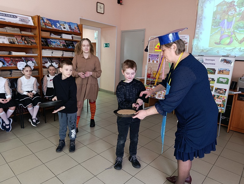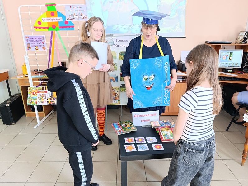 Вместе с Книгой и Пеппи Длинный чулок ребята сделали остановку у сказочной клумбы, где вспомнили сказочные цветы и книжки, в которых эти цветы встречаются. Затем побывали в зоопарке дедушки Крылова и отгадали животных – героев его басен. В детективном тупике школьники продемонстрировали свою наблюдательность и смекалку. Все дружно прокатились на стихокарусели и отдохнули на скамейке веселых рассказов. Дети активно участвовали в веселых играх – искали хитрую лису, составляли сказочный букет, играли в «литературное лото». Атмосферу праздника создали участники хорового коллектива «Мечтарики» ЦКД «Индустриальный». Закончился праздник на крыльце библиотеки, где ребята сделали Книге отличный подарок – «кричалки» о пользе библиотеки.