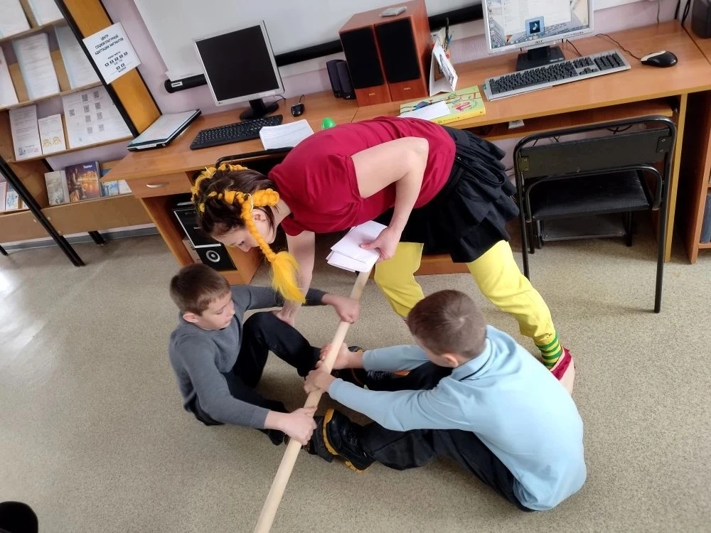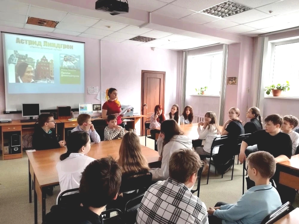 Школьники отправились в путешествие по Швеции, – родине одной из самых популярных писательниц мира, Астрид Линдгрен, – узнали историю создания книги «Пеппи Длинный чулок». А затем Пеппи Длинныйчулок предложила всем пошалить и поиграть. Вместе с озорной, непоседливой Пеппи мальчишки и девчонки дружно приняли участие в играх: «Путь на банановый остров», «Бег в калошах», «Чёрный ящик», «Бутылочная почта», «Исправь ошибки в приглашении на День рождения Пеппи», «Поднять якоря» – ответили на каверзные вопросы викторины «Кукарямба!», разгадали все «Ребусы». Весело и увлекательно прошло мероприятие! Ребята получили новые знания, много положительных эмоций и сладкий приз, который заработали, выполняя задания проказницы Пеппи Длинныйчулок.