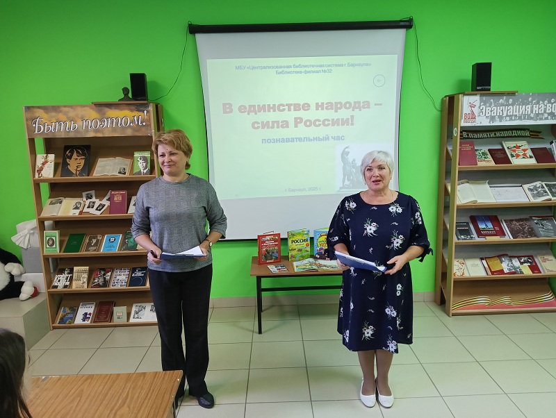 21 октября сотрудники библиотеки №32 провели для учащихся Барнаульской общеобразовательной школы-интерната №3 познавательный час «В единстве народа – сила России».