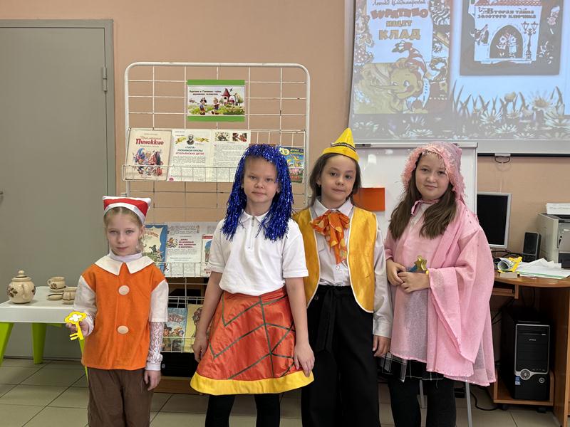 Отпраздновать день рождения Пиноккио и Буратино пришли ученики 3 «а» класса МБОУ «СОШ №118». Школьников ждала встреча с любимыми персонажами, а также множество игр и викторин. Ребятам предстояло вернуть героев в книжки, вспомнить породы собак – участников описываемых событий, узнать героя по описанию, спеть вместе с героями любимые песенки. За правильные ответы команды Буратино и Пиноккио получали сольдо. Удивительно, но команды заработали одинаковое количество монет. Впрочем, чудеса случаются не только в сказках, но и в библиотеке!