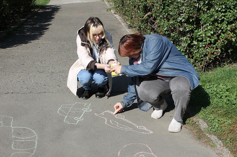 В течение часа в сквере на площади Октября студенты и библиотекари создавали арт-рисунки на асфальте, приняв участие в конкурсе «Транспорт будущего». Лучшие проекты были отмечены символическими призами и аплодисментами зрителей. Студенты и работники библиотеки раздавали прохожим книжные закладки с информацией о пользе пеших прогулок и поездок на велосипедах. В заключение акции состоялся флеш-моб «Всемирный день без автомобиля. Сегодня я – пешком!». Акция объединила студентов и горожан, подарила атмосферу радости, творчества и напомнила о важности заботы об окружающей среде.