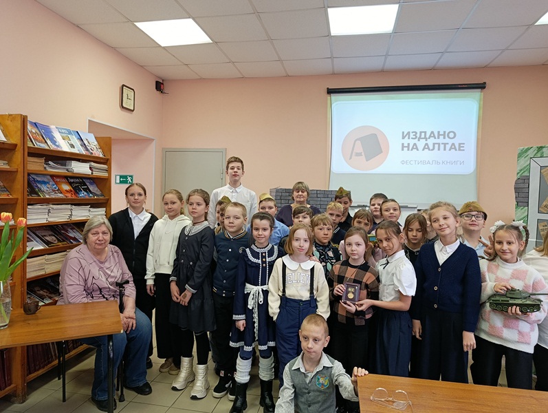 Участниками мероприятия стали ученики 3 «г» класса МБОУ «СОШ №118». Издание Алтайского государственного краеведческого музея в занимательной форме знакомит детей младшего возраста с некоторыми страницами Великой Отечественной войны. Представление книги прошло в форме экскурсии по военному музею. Экскурсовод школьного музея Василий Афаньков рассказывал о предметах военной жизни, поделился воспоминаниями из военной биографии своего деда-фронтовика. С волнением школьники слушали историю котелка, прошедшего с солдатом всю войну, разглядывали ордена и медали, примеряли пилотку и каску. Почетным гостем мероприятия стала одна из авторов книги – писатель Елена Юрьевна Бызова. Она рассказала ребятам о том, как ей удалось придумать такую познавательную и интересную историю про мальчика Сережу, призвала школьников быть благодарными героям Великой Отечественной войны.