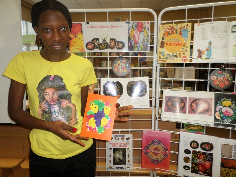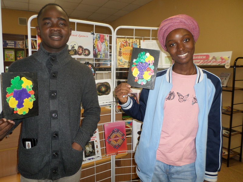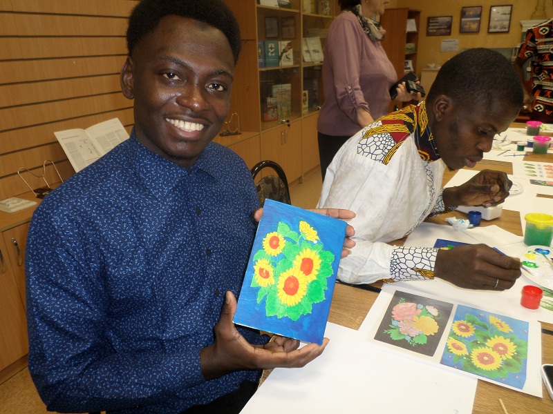 Будущих студентов познакомили с удивительным русским народным промыслом – жостовской декоративной росписью кованых металлических (жестяных) подносов, день чествования которого отмечают 18 марта. Молодые люди познакомились с историей этого удивительного искусства, где на черном фоне расцветают пышные садовые и полевые цветы. В нашей творческой мастерской каждый из молодых ребят расписывал свое изделие из дерева, стараясь передать изящество жостовского букета или фруктово-цветочной композиции. Молодые люди из стран африканского континента, изучающие русский язык и нашу культуру, получили массу положительных эмоций, ведь жостовские узоры вдохновляют красотой и дарят настроение, а еще помогают лучше узнать, понять нашу страну и воспитывают уважение к традициям нашего многонационального народа. В рамках мероприятия звучали классические и русские народные песни, была подготовлена выставка-экспозиция «Жостовский букет».