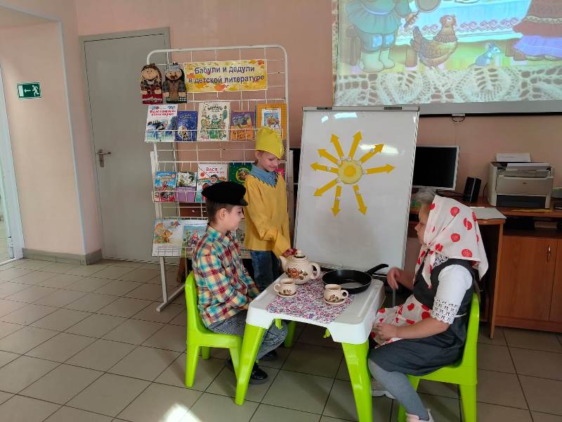 В этот день в библиотеке засияло необычайно лучистое солнышко, где каждый лучик означал ласковое слово в адрес бабушек. Дети порадовали своих бабушек стихами, инсценировали для них сказку «Курочка Ряба». Бабушки и внуки дружной компанией играли в куклы и мяч, вспоминали любимые сказки, собирали урожай овощей и фруктов. Закончилось мероприятие обзором книг, представленных на выставке «Бабули и дедули в детской литературе» и просмотром мультфильма «Бабушка удава».