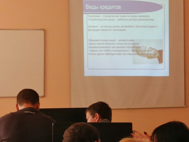 14 октября студенты Алтайского государственного колледжа приняли участие в информационном уроке «Беру кредит», где знакомились, чем отличается кредит от микрозайма, в каких случаях можно отказаться от страховки, что делать с неиспользуемой кредитной банковской картой. В ходе занятия вычислили %, которые предстоит выплатить банку на заданную сумму, рассчитали полную стоимость кредита на различные сроки, ежемесячный платеж, поучаствовали в викторине.