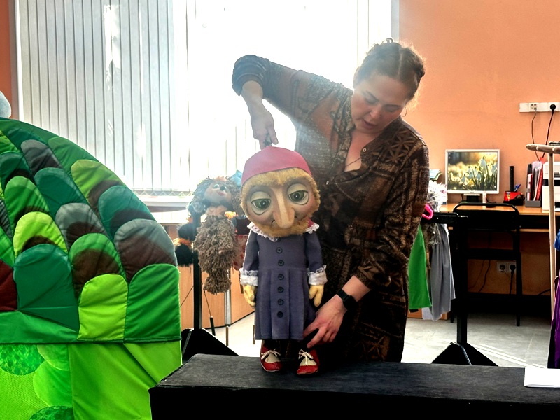 В ходе театрализованной экскурсии участники совершили путешествие в мир кукольного искусства, в которое они отправились вместе с мастером сцены Алтайского государственного театра кукол «Сказка» Шарабариной Анастасией. Анастасия рассказала о создании спектаклей от идеи до премьеры, о самых интересных, необычных и волшебных спектаклях. О том, как выбирают драматургию, как создаются эскизы декораций, реквизит и какие бывают виды кукол. Мастер сцены эмоционально и ярко продемонстрировала разные системы кукол: тростевые, перчаточные, планшетные, мапетка, тантамареска, марионетка, ростовые и мимикрирующие куклы. Взаимодействуя с детьми, ведущая дала возможность почувствовать себя настоящими артистами. Особое внимание Анастасия уделила особенностям работы актёров с куклами, объяснив, что значит «работать в маску», «работать на грядке», работать «в чёрном кабинете». Ребята искренне были удивлены, узнав, что с теневой куклой могут работать до 8 актёров одновременно! Актриса показала, как работают с перчаточными куклами за ширмой. А в финале программы ребята приняли активное участие в мастер-классе по кукловождению, где смогли почувствовать себя настоящими актерами-кукольниками!