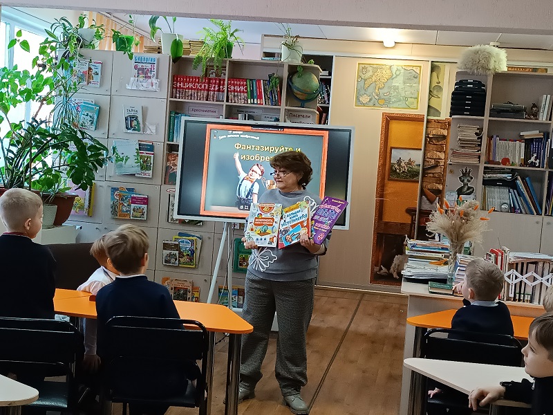 14 января сотрудники библиотеки №15 провели занимательный урок «Маленькие гении: детские изобретения», приуроченный к Международному дню детских изобретений. Участниками стали учащиеся 1 «А» класса МБОУ «Гимназия № 80».