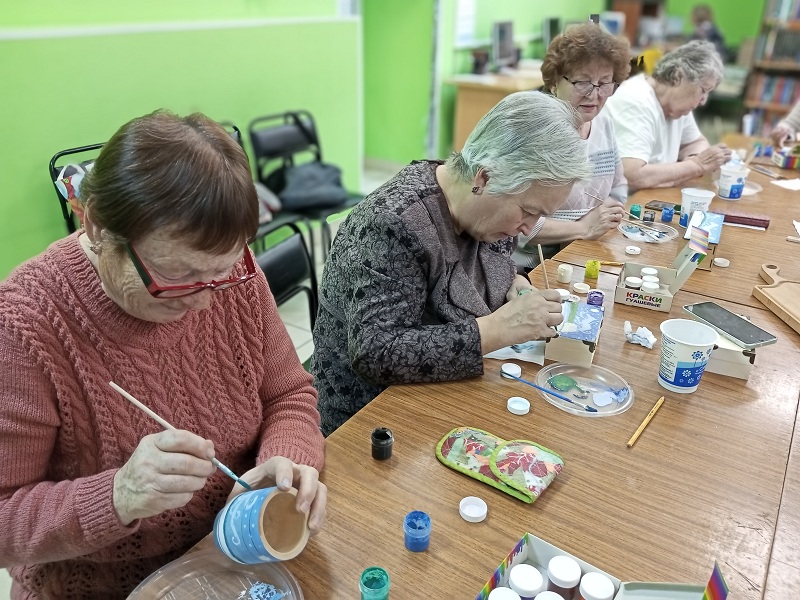 В этот раз на занятии получилось объединить все полученные творческие знания в новогоднем стиле, с символом будущего года, гости расписали деревянные шкатулочки. Как в настоящей художественной мастерской, в библиотеке открылось не только множество ярких красок, но и творческие таланты участников.