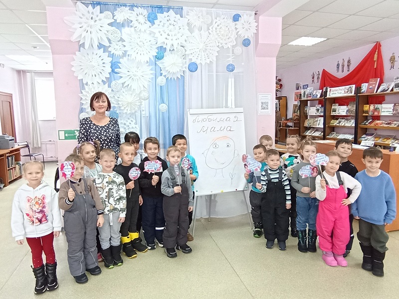 25 ноября библиотека №17 приглашала ребят из МБДОУ «Детский сад №157» и их мам на семейную гостиную «Моя мама солнышко, а я её подсолнушек».