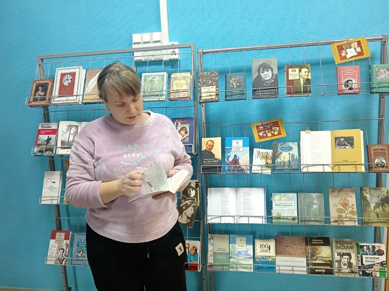 В течение дня были показаны видеоролики, где известные актеры читают произведения поэтов. Каждый желающий смог приобщиться к поэзии, прочитав вслух своё любимое стихотворение. В подарок участники акции получили книжные закладки со строками известных авторов, а все желающие сделали селфи на фоне книжной выставки с понравившимися поэтическими сборниками.
