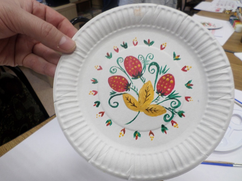 16 апреля в нашей библиотеке для реабилитационной группы «Арт-терапия» жителей нашего города работала мини-студия, посвященная удивительному искусству хохломской росписи. В течение творческого часа участники: погрузились в историю одного из самых известных народных промыслов России, услышали легенду о чудо-мастере, который жил на берегу реки Хохломинка в Нижегородских лесах. Узнали, почему изделия хохломы выглядят так, будто покрыты настоящим золотом. Познакомились с характерными элементами орнамента – пышной травкой, земляничкой, изящными цветочными мотивами и завитками. Попробовали себя в роли настоящих художников! В нашей творческой мастерской каждый расписал свою тарелочку, стараясь передать изящество хохломского узора. Работы получились яркими, красивыми, интересными, а самое главное – неповторимыми! Каждый участник внёс в свою работу творческую изюминку. Такие занятия не только развивают чувство прекрасного, но и воспитывают любовь к родной культуре и уважение к традициям нашего многонационального народа. Посмотрите, какие яркие шедевры у нас получились!