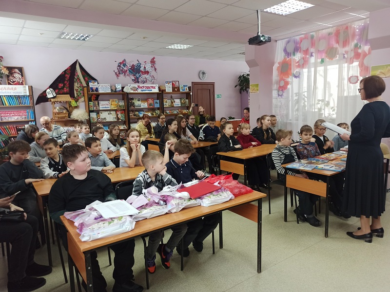 Неделя детской книги – это добрый праздник всех читающих ребят, праздник радости и встреч с любимыми книгами. Открытие «Книжкиной недели» в библиотеке началось с экскурса в историю её возникновения. Библиотекарь рассказала о далёких военных годах, когда замечательный детский писатель Лев Кассиль придумал «Книжкину неделю», и о том, как и за что этот весёлый праздник полюбили все дети нашей страны. С помощью яркой, интересной презентации школьники совершили виртуальное путешествие в далёкое прошлое и узнали, как жил и творил свои произведения великий Г.Х. Андерсен, чей день рождения принято считать Международным днём книги. Ребята вспомнили все сказки Андерсена, а также другие свои самые любимые литературные произведения. Затем наступило время весёлых развлечений. Ведущая, в образе Королевы книги, приготовила для гостей праздника множество хитрых загадок-обманок, литературных игр, кроссвордов, викторин и конкурсов. После сложных интеллектуальных игр дети с удовольствием отвлеклись на весёлую игру «Книжный хоровод». Встав в большой, дружный хоровод вокруг «библиотечного солнышка», дети по очереди выполняли задания, написанные на ярких лучиках: рассказывали сказки, стихи, изображали книжных героев, называли волшебные предметы из сказок и т.д. С каждым правильным ответом ребят солнышко светило всё ярче, дети становились всё умнее, и к концу праздника Королева Книга вручила каждому сладкий приз. На встрече также чествовали лучших читателей, участников разнообразных библиотечных конкурсов и мероприятий. Они получили благодарственные письма и подарки. У ребят от мероприятия осталось хорошее, доброе, светлое впечатление.