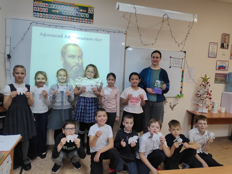 Встреча прошла в рамках программы «Я с книгой открываю мир природы», учащиеся начальных классов МБОУ «СОШ №70» познакомились с биографией и творчеством Афанасия Афанасьевича Фета. Дети узнали о том, что поэт еще ребенком любил слушать волшебные сказки, и как это вдохновило его на создание будущих поэтических произведений. Лирика поэта подобна музыке, воспевающей красоту окружающего мира - эту красоту мы смогли увидеть и ощутить на мероприятии. Прикосновение к творческому наследию поэзии «Золотого века» является важной составляющей в просвещении и воспитании подрастающего поколения. Воплотить свою творческую фантазию, вдохновляясь стихами Фета, дети смогли на мастер-классе по созданию аппликации. Школьники отметили, что мероприятие помогло им по-новому взглянуть на творчество уже хорошо знакомого автора.