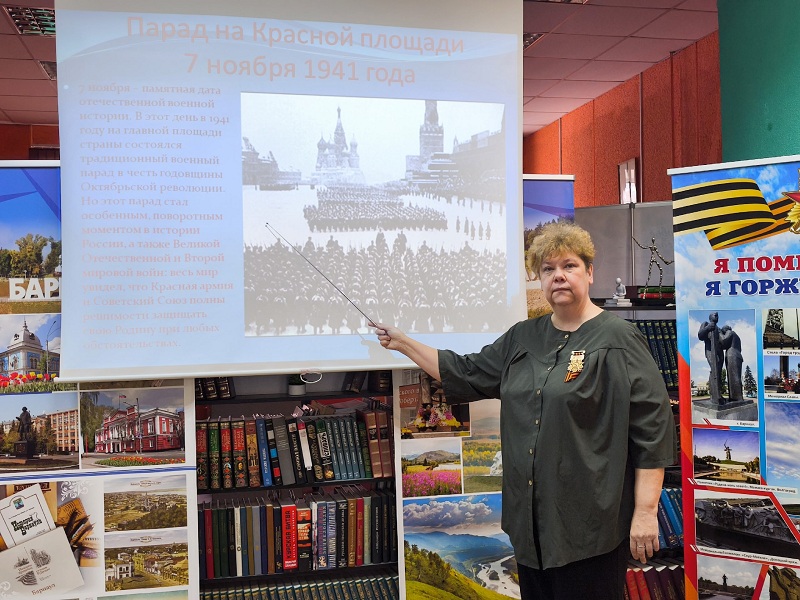 Ребята узнали о беспримерном подвиге советского народа в Великой Отечественной войне. В ходе мероприятия приглашенные гости – Донских Наталья Вениаминовна и Ульянова Татьяна Михайловна, ветераны прокуратуры Алтайского края, – рассказали ребятам о первых днях войны, о том, какие войска участвовали в сражении, где проходили жестокие бои, о бесстрашии и героизме наших земляков в битве за Москву, о том, как приближали победу труженики тыла. Наталья Вениаминовна показала фронтовые письма и медали из семейного архива. В заключение мероприятия минутой молчания почтили память всех тех, кто подарил нам мир на земле ценой своей жизни.