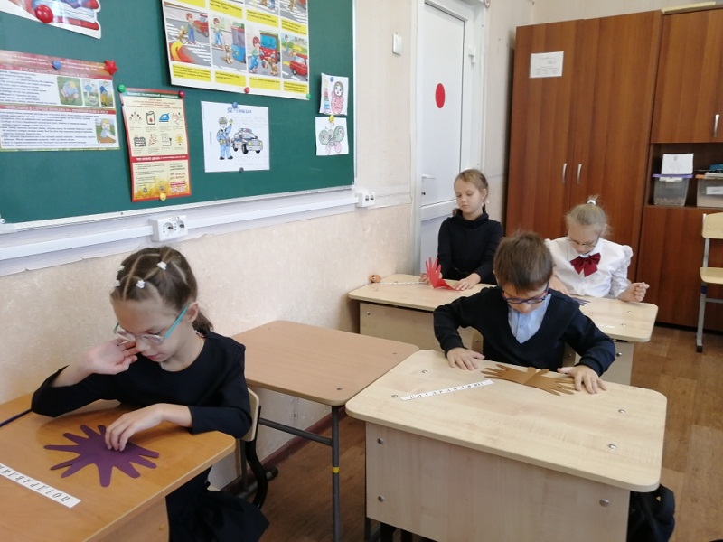 Важным моментов в работе со слабовидящими детьми является не только наличие аудиоматериала, но и осязательные элементы, поэтому в заключение мероприятия детям было предложено сделать открытки для своих пап в технике аппликация. Школьники справились с творческой работой и приятно удивили своим мастерством родителей и педагогов.