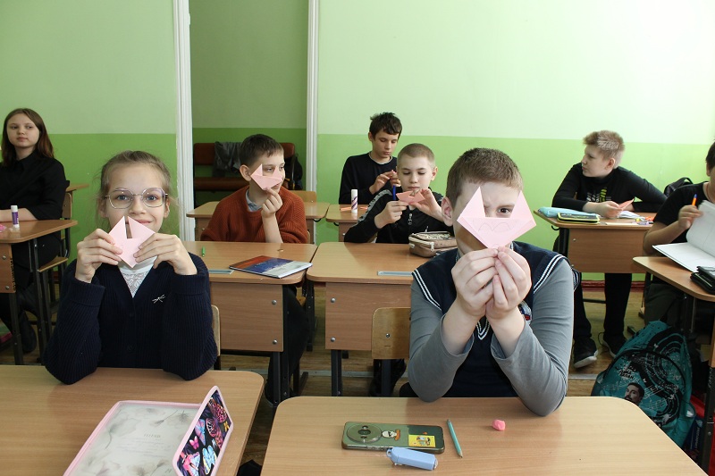 16 марта на базе «СОШ № 103» сотрудник Центральной городской библиотеки им. Н.М. Ядринцева провел для учащихся коррекционного 4 класса интеллектуальную игру «Познаем мир вместе» с мастер-классом по оригами.