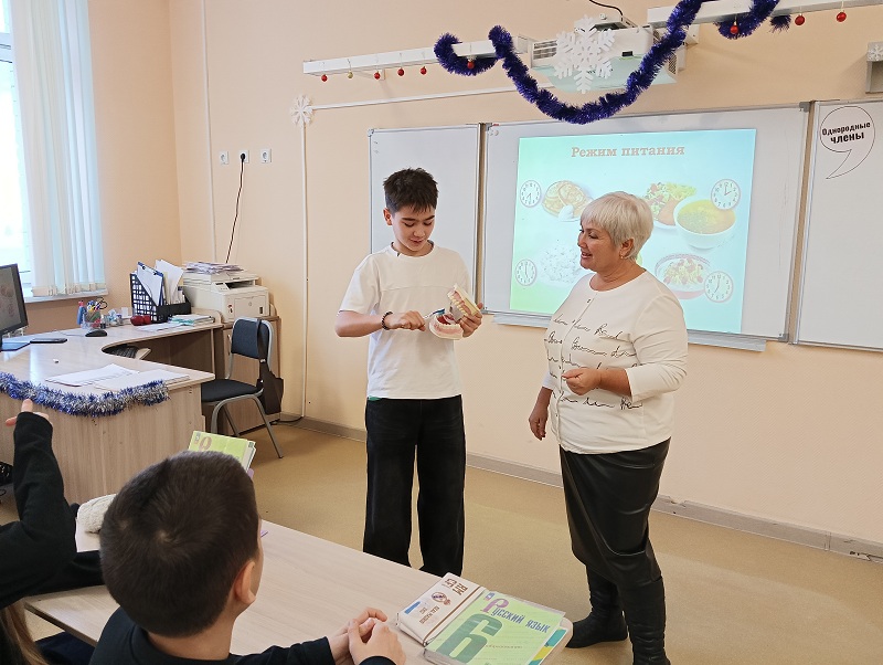 Для учащихся среднего звена был организован профилактический урок по учебному элементу «Твое здоровье и правила здорового питания». Ирина Михайловна рассказала о важности здорового образа жизни, его ценности и роли в жизни каждого человека. Особое внимание уделила здоровому питанию, целебным свойствам фруктов и овощей, а также разграничению «полезной» и «вредной» еды. Ребята активно обсуждали, что для здоровья важны спорт, режим дня и гигиена.