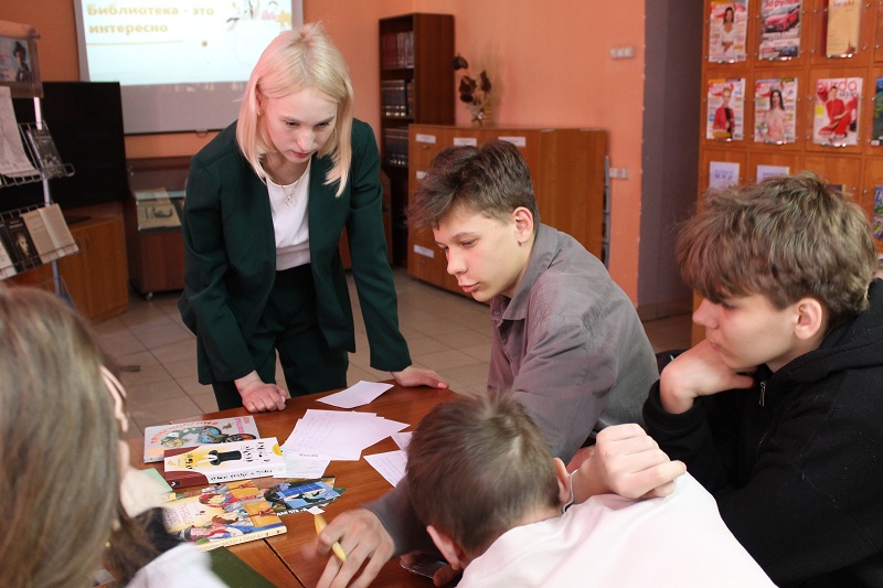 Сотрудник библиотеки рассказал старшеклассникам лицея № 130 об особенностях работы библиотекаря. На встречу с подростками пришли преподаватели и студенты Алтайского государственного института культуры. Они рассказали аудитории об особенностях обучения в их вузе, поделились своими планами на будущую работу в библиотеке. Студенты рассказали школьникам о своих новаторских идеях, которые они мечтают воплотить, работая в библиотеке. Студенты АГИК также подготовили для учащихся библиотечный квиз и другие игровые формы, позволяющие подросткам ознакомиться с особенностями библиотечной профессии.