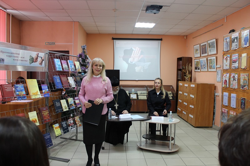Сотрудник библиотеки рассказал об истории возникновения коррупции и о современном состоянии противодействия коррупции в России. В рамках встречи выступили: проректор Барнаульской духовной семинарии отец Георгий и Баньковская Е.Р. Центральной идеей встречи стало понимание того, что противодействие коррупции невозможно только силами государства – это задача, требующая активного участия каждого гражданина и формирования культуры нетерпимости к нечестным практикам. Практическая часть мероприятия была представлена психологическим тренингом, направленным на изучение механизмов коррупционного поведения, так называемых психологических ловушек. Участники обсудили причины, побуждающие человека принимать неэтичные решения, разобрали реальные сценарии давления, манипуляции и самооправдания, а также получили инструменты, помогающие сохранить нравственную устойчивость и профессиональную этику в сложных ситуациях.