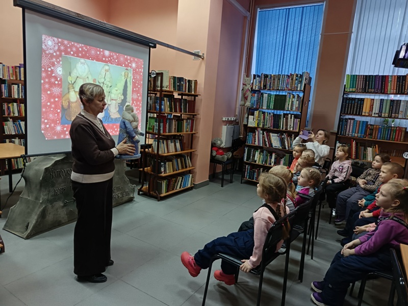 В преддверии празднования Нового года специалисты библиотеки № 18 для воспитанников детских садов и детей младшего школьного возраста провели познавательный час «Путешествие новогодних игрушек».