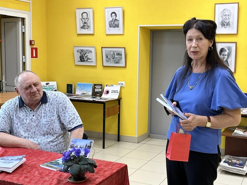 Николай Александрович родился в большой крестьянской семье в селе Усть-Алейка Калманского района Алтайского края. По профессии строитель, награжден знаком администрации г. Барнаула «За вклад в развитии литературы», автор 5 сборников стихотворений и рассказов: «У истока», «На излёте», «А напоследок я скажу…», «Я вам пишу…». В своих стихах воспевает родную природу, русскую деревню, показывает любовь к родным и любимым людям, особенно к детям и внукам, обращается к военной тематике. Очень теплый отзыв аудитории получили юмористические, добрые, светлые стихи, вызывающие улыбку. Николай Александрович – хороший организатор, 10 лет руководил литературной студией «Отрада». По его словам, много «оперившихся птенцов» вышло из студии, и все они благодарны своему учителю. На мероприятии выступили собратья по перу: Алевтина Пакшина, Юрий Малых, Галина Михайлова, Ирина Гонюкова, Татьяна Токарева, Вера Черенкова, Сима Болдина. Здоровья и новых творческих вершин пожелали читательницы библиотеки: Мария Артюхова, Светлана Савицкая, Наталья Жданова. В течение всего мероприятия в исполнении дуэта «На два голоса» Галины Марчуковой и Валентины Корчагиной звучали песни: «Земля родная», «Одинокая гармонь», «На два голоса» и другие. Мероприятие закончилось, но никто не спешил уходить, каждому хотелось поделиться впечатлениями, сфотографироваться с поэтом. В дар библиотека получила новый поэтический сборник с автографом Николая Александровича.