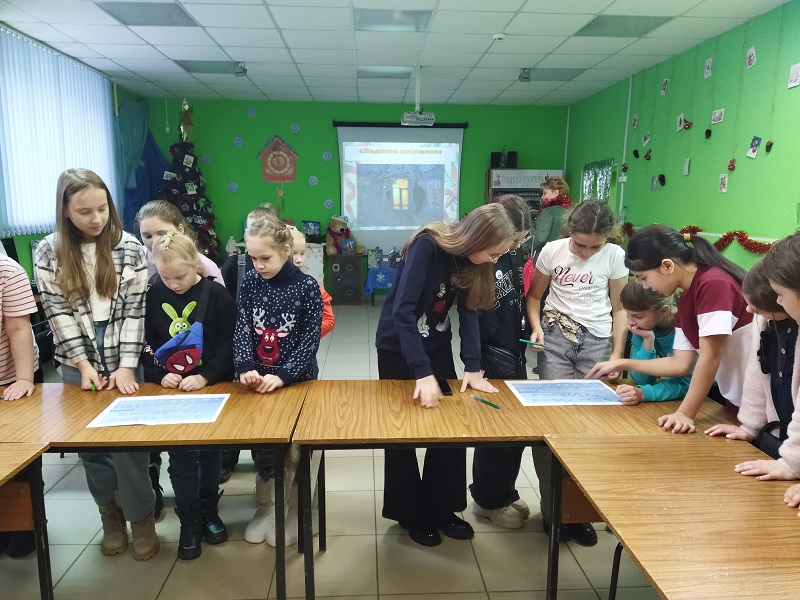 В этот волшебный сочельник, когда особенно хочется вспомнить и оживить старинные традиции самого светлого праздника, ведущие провели для ребят увлекательную беседу о русских обычаях. Затем все вместе посмотрели яркие отрывки из любимого фильма «Ночь перед Рождеством», обсудили, чем занимались люди в эти дни, и узнали о колядках. Конечно же, не обошлось без активных конкурсов и игр, где каждый мог проявить свою смекалку, ловкость и чувство юмора. Особенно весело прошел конкурс «Парад матрешек», вызвавший бурю эмоций и смеха. А шуточное гадание позволило ребятам немного заглянуть в будущее. После активных игр наступило время для творчества: в рамках мастер-класса «Новогодняя игрушка» ребята создавали елочные украшения и делились удивительными историями из своей жизни.