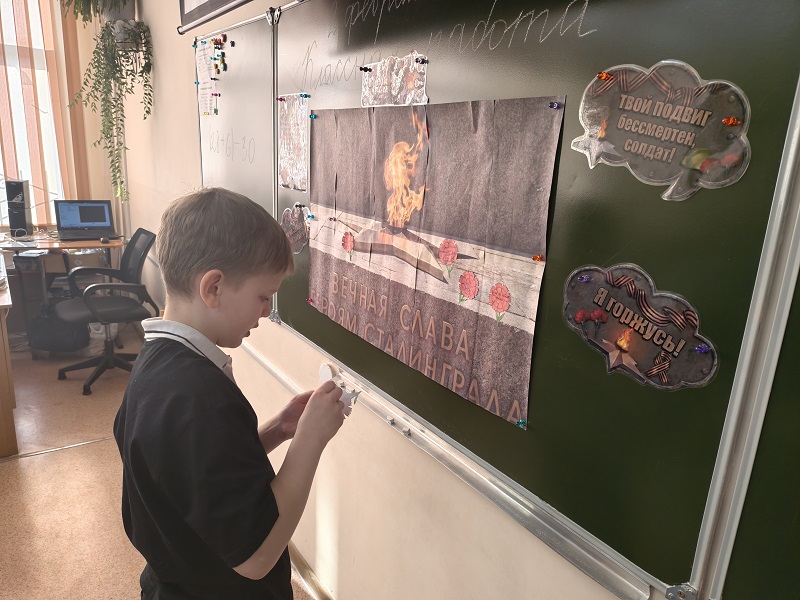 В ходе мероприятия школьники познакомились с хронологией основных событий великой битвы и узнали о её решающем значении в Победе. Особый интерес у ребят вызвал просмотр видеоролика о легендарной обороне Дома Павлова, ставшего символом стойкости советских солдат. Пятиклассники вспомнили подвиги героев Сталинграда: Василия Зайцева, Михаила Паникахи, Матвея Путилова, Якова Павлова и других защитников. В завершение урока школьники вместе сделали коллективный плакат памяти, вложив в него свою благодарность тем, кто ценой жизни ковал Победу.