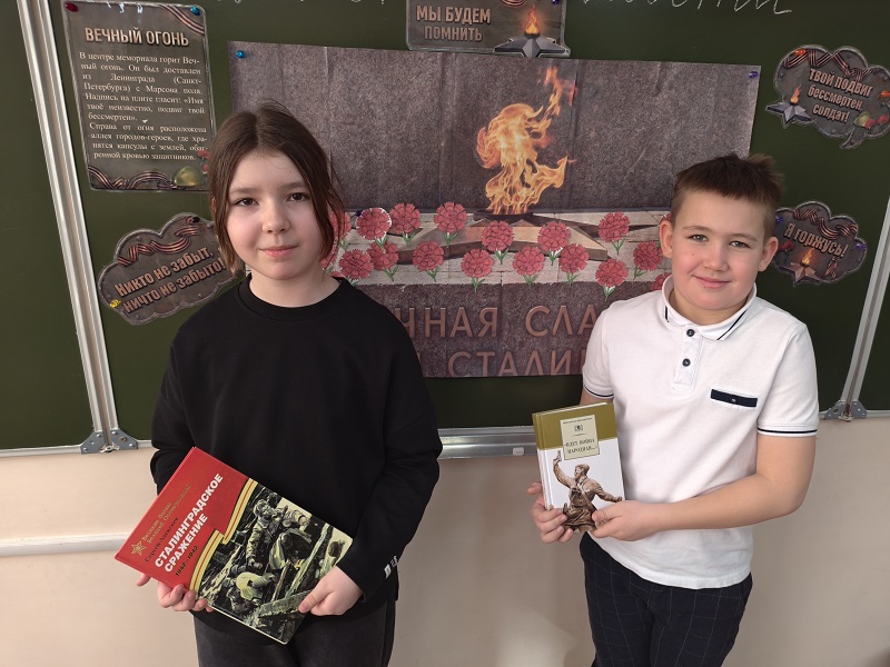 2 февраля, в День разгрома советскими войсками немецко-фашистских войск в Сталинградской битве, библиотека-филиал №17 на базе МБОУ СОШ №126(2) для учащихся 5 «Б» класса провела урок мужества «Солдатский долг, исполнив славно, мы отстояли Сталинград».