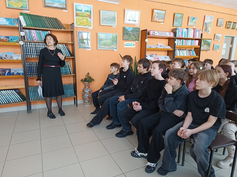 11 марта в библиотеке №15 прошел литературно-музыкальный коллаж «Союз родных сердец», посвященный Дню единения народов России и Белоруссии для учащихся 7 класса МБОУ «СОШ №37».