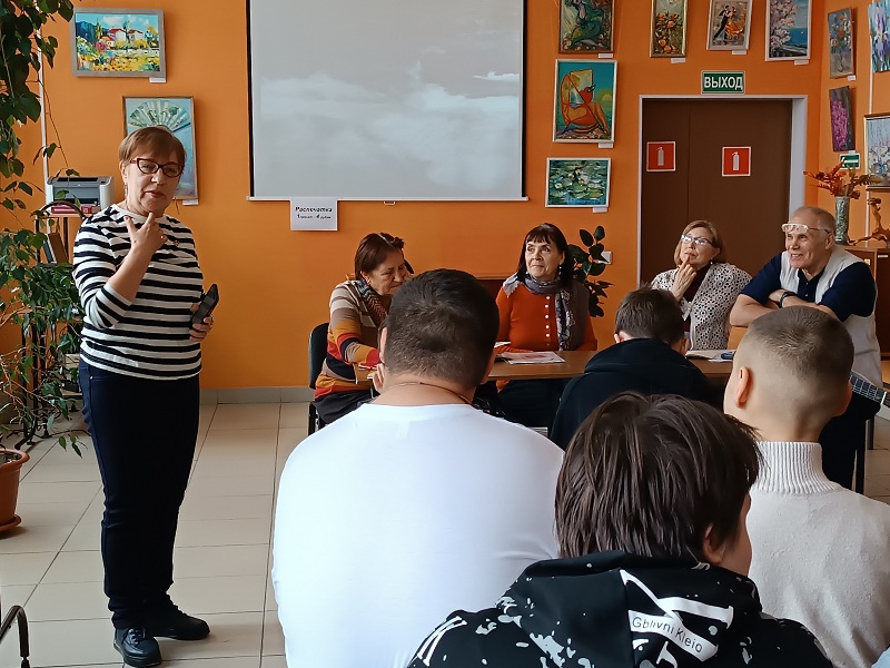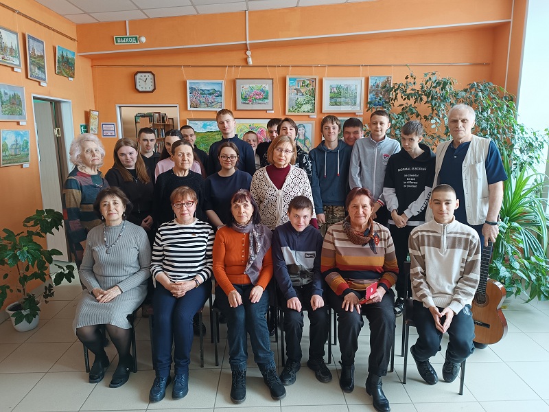 Художники из клуба «Возрождение» под руководством Н.И. Митягиной представили школьникам свои творческие работы в различных техниках и жанрах, объединенные общей темой – весенним пробуждением природы. Надежда Митягина рассказала ребятам об истории создания своего творческого объединения, о его первом руководителе, знаменитом алтайском художнике Викторе Зотееве, о благотворном влиянии художественного творчества на становление личности. Татьяна Шацукевич и Татьяна Филиппова представили свои весенние пейзажи, рассказали истории их создания. Александр Савченко, не только художник, но и увлеченный турист, под аккомпанемент гитары исполнил популярные туристические песни и продемонстрировал свои работы, написанные под впечатление от красот Горного Алтая. Встреча прошла в дружественной и творческой атмосфере.