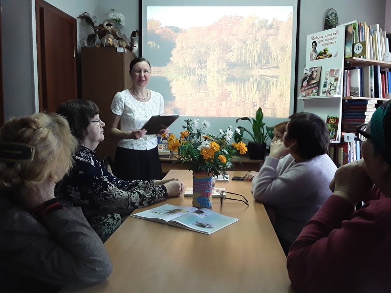 1 октября в библиотеке №16 состоялась литературно-музыкальная гостиная «Стихи и песни выбрали меня!», посвященная Дню пожилого человека. Мероприятие проходило в рамках Клуба любителей чтения «Книгочей».