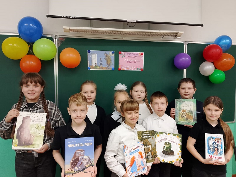 27 ноября в библиотеку №10 были приглашены дети начальных классов МБОУ «СОШ №93» на час книжных удовольствий «Светлый праздник – мамин день».