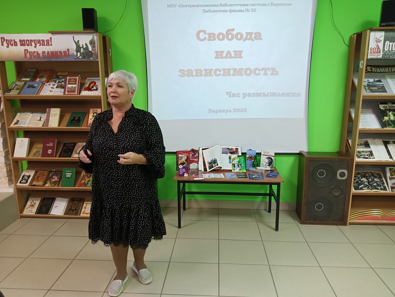 28 ноября в библиотеку №32 на час размышления «Свобода или зависимость» пригласили учащихся старших классов школ Индустриального района.