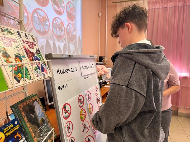 Школьники активно включились в разговор об ответственности человечества перед природой, вспомнили уникальные места на карте России, предлагали различные способы охраны животного мира. Подростки разгадывали кроссворд «Красная книга Алтайского края», участвовали в «Чистых играх». Вниманию детей была представлена книжная выставка «С любовью к природе».