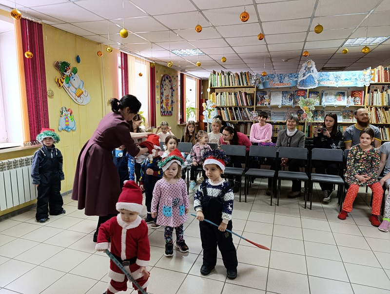 В начале встречи дети в увлекательной форме узнали об истории и традициях празднования Нового года в нашей стране. Затем в гости к ребятам пришли известные всем герои деревни Простоквашино: Шарик, кот Матроскин, дядя Фёдор, почтальон Печкин, а также Дед Мороз и Снегурочка. Вместе со сказочными героями малыши отправились в увлекательный и весёлый мир игр, новогодних викторин, загадок, конкурсов и спортивных эстафет, где все смогли показать свою быстроту, ловкость, выносливость, смекалку и эрудицию. Малыши активно принимали участие в эстафетах: «Снежинки», «Чемпионы хоккея», «Елочки бывают разные» и «Новогодние оладушки». Мероприятие прошло в тёплой, дружеской атмосфере, все участники получили заряд бодрости и прекрасное настроение.