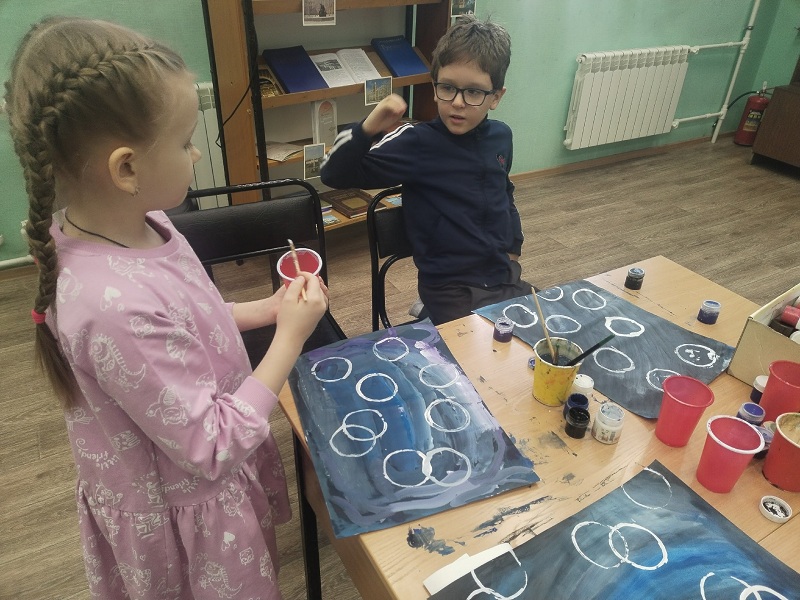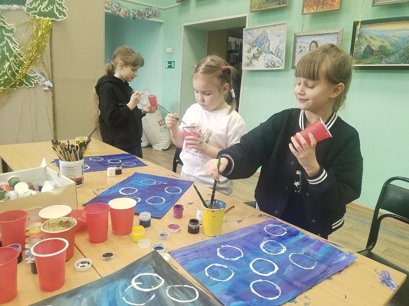Ребята рисовали новогодние узоры и создавали отпечатки игрушек с помощью стаканчиков-штампов. Юные художники с увлечением погрузились в творческий процесс и ушли с обственными праздничными работами. Мероприятие подарило детям радость и ощущение приближающегося чуда.