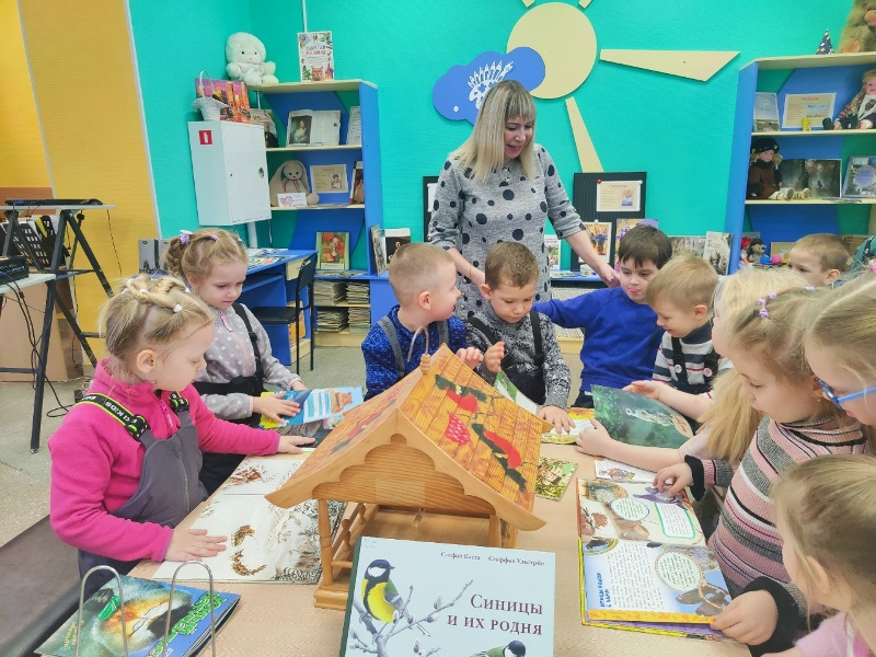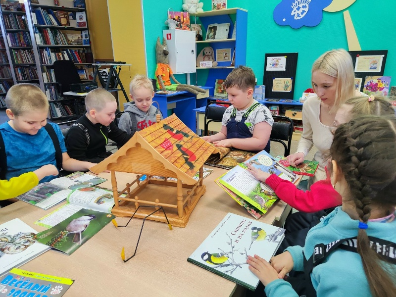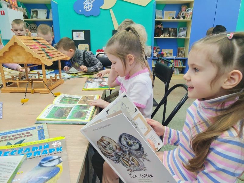 Ребята узнали, кто такие зимующие и перелетные птицы, какие птицы остаются зимовать, как нужно помогать птицам, когда кормить и чем, как изготовить своими руками кормушки и как правильно их развешивать. Дети также рассказали, как они сами наблюдают за птицами, каких птиц они видели зимой в лесу и в парке, какие варианты кормушек они знают. Дошкольники отгадывали загадки о птицах, смотрели видео и приняли участие в «Птичьей викторине». Узнать интересные факты из жизни птиц помогла книжно-иллюстративная выставка «Пернатые соседи». На ней представлены познавательные книги, произведения писателей-натуралистов и периодические издания. В заключение мероприятия ребята дружно спели песенку про воробышка и были единодушны: «Всем нужны друзья – даже воробьям!»