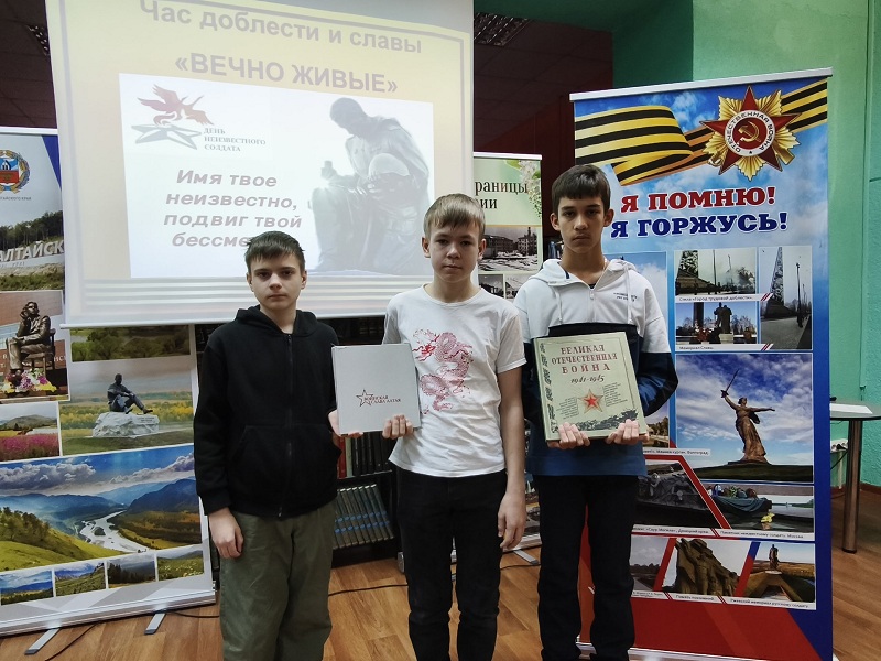 Этот день призван увековечить память и бессмертный подвиг советских и российских воинов. С большим интересом ребята смотрели документальную хронику и слушали рассказ ведущего. Учащиеся узнали о поисковом движении в нашей стране, о поисковых отрядах, которые находят реликвии Великой Отечественной войны, останки бойцов и разыскивают родственников погибших. Все присутствующие на мероприятии почтили память солдат, защищавших Отечество и ценой своей жизни сберегших Родину.