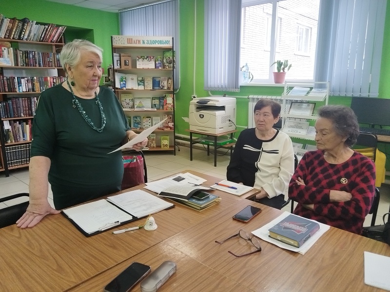 16 апреля в информационно-выставочном зале библиотеки №32 на творческое занятие «Время и гений» собрались члены литературного клуба «Родное слово» Союза пенсионеров Индустриального района г. Барнаула.