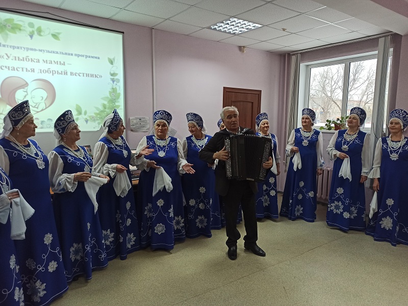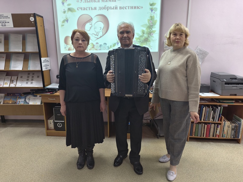 Ведущие сказали теплые слова в адрес мам и бабушек, сидящих в зале, познакомили с историей возникновения праздника. В фойе библиотеки экспонировалась выставка-поздравление «Единственной маме на свете», а также выставка «Любимой маме посвящается», на которой были представлены творческие работы читателей библиотеки. Атмосфера доброжелательности и хорошего настроения, созданная в этот день, располагала к общению. Порадовало зрителей выступление музыкального коллектива «Душевный разговор» под руководством А.А. Бердникова. Участники концерта пели песни, на протяжении всего мероприятия присутствующим дарили не только добрые слова и улыбки, но и специально подготовленные номера. Концертная программа получилась яркой, зрелищной и запоминающейся.